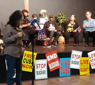 En primer lugar, nuestro profundo agradecimiento por invitarnos a esta actividad para denunciar el acoso del FBI a nuestra Brigada y por todas las expresiones de apoyo recibidas. Participar en una actividad auspiciada por varias organizaciones y grupos en Nueva York nos anima en esta larga lucha libertaria que llevamos los puertorriqueños y puertorriqueñas. Somos fieles creyentes de que la unidad en la diversidad nos fortalece y que la solidaridad entre los pueblos es una bandera que debemos mantener en alto por encima de cualquier adversidad, amenaza o situación. Por ello, le reiteramos las gracias. Un saludo muy especial a los otros panelistas que me honran con su participación. Somos una sola voz ante la maldad imperial y todos y todas levantaremos la bandera de la solidaridad con Cuba, Puerto Rico y la Humanidad.